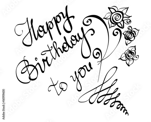 Vector Hand Written Lettering Calligraphy Text Happy Birthday To You For Greeting Card Isolated Black Phrase With Cursive Letters And Rose Flowers Details On A White Background High Quality Buy This